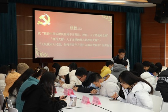 12月22日,“深刻领悟讲话精神·奋力践行时代担当”——我校第十二期研究生党支部书记例会议程暨党支部书记沙龙开展。全体研究生党支部书记参会,认真研学习近平总书记近期考察上海的重要讲话精神,激励广大研究生党员勇担时代使命。 会议通过观看“潮涌东方再杨帆—习近平总书记上海考察纪行”和“总书记上海之行心系人民城市建设”两个专题视频,再次重温了习近平总书记的上海之行,思考本次考察蕴藏的深意。随后,与会研究生党支部书记分成六组,围绕“推进中国式现代化离不开科技、教育、人才的战略支撑”“科技支撑、人才支撑的核心是教育支撑”“人民城市人民建,如何将青年力量注入城市发展中”进行讨论,并每组选定一名代表进行总结发言。 交流发言环节,马克思主义学院第二党支部的王一帆结合自身研究方向,分享了她对“推进中国式现代化离不开科技、教育、人才的战略支撑”的深刻理解,谈到青年继续教育和终身学习对于中国式现代化的助益;管理学院沪江党建云工作室党支部的李鑫、外语院英语语言文学研究所党支部的施人文和和基础数学研究生党支部的王玺则分别从加强思想引领、优化发展环境、聚焦青年要求三个维度讨论了人民城市人民建的话题。他们一致认为,打造人民之城,需要引导人人有序参与治理,提高主人翁意识;需要借助科技的力量,留住科研人才;需要基于生活保障,提高人民居住幸福感;光电学院软件工程研究生党支部的廖泽南和光电学院信号研究生党支部的刘晓阳对“科技支撑、人才支撑的核心是教育支撑”分享看法,坚持科技是第一生产力、人才是第一资源、创新是第一动力,深入实施科教兴国战略、人才强国战略、创新驱动发展战略,开辟发展新领域新赛道,不断塑造发展新动能新优势。此外,与会研究生党支部书记纷纷表示,在以实际行动落实讲话精神的同时,强化“不待扬鞭自奋蹄”的奋斗自觉,用基层党建工作的优异成绩迎接学校第九次党代会的召开。 据悉,研究生党支部书记例会是我校研究生 “5252” 基层党建育人体系的组成部分,是加强我校研究生党支部书记队伍建设、发挥党支部书记头雁作用、引领广大研究生党员的一个重要机制,打破了不同学院、不同支部的空间壁垒,促进各支部联学联建、交流沟通,有效提升了基层党组织的组织力。
