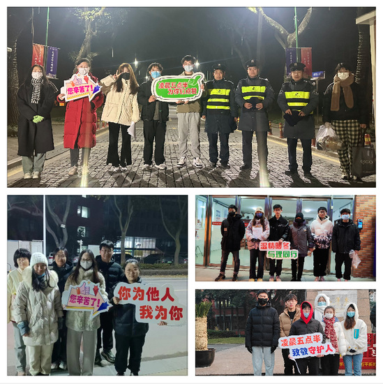 为了以实际行动给更多校园“守护人”送去温暖,向最基层劳动者致以崇高敬意,12月26日,我校研究生团委接力开展“凌晨五点半”暖心感恩志愿服务活动,送温暖覆盖门卫小哥、宿管阿姨、保洁工人等后勤工作者。 凌晨五点半,5个志愿者小组配齐物资,从指定地点准时出发,沿着各自的路线到每个后勤岗位上,为一直默默奉献的后勤工作者送上精心准备的温暖礼物。此次“凌晨五点半”感恩志愿服务活动分为5条线路,志愿者们裹着厚重的棉袄,顶着冽冽寒风,分别从334号、516号、580号校门出发,为一线工作人员送去了手套、帽子、护手霜、姜茶等小礼物。 “叔叔,您这么早起来站在这里,辛苦啦,这是送给您的帽子和手套,现在天气冷,您一定要注意保暖!”门卫叔叔脸上绽放笑容,表示感到非常温暖。 志愿者们热心地为阿姨送上了一杯红糖姜茶,关心阿姨每天要做的工作。参加完活动后,理学院徐晓凤同学分享了自己的感悟:“基层工作人员坚守在平凡的岗位上,实现了不平凡的价值,他们默默守护着我们的校园,为我们保驾护航。这个冬天,送上我们的爱心服务,他们脸上洋溢的笑容赋予了这个清晨崭新的意义。” “凌晨五点半”暖心感恩志愿服务活动是研究生团委自2018年发起,5年内累计参与志愿者1000余人,送温暖800余人。今年是“凌晨五点半”感恩活动持续开展的第6年,通过活动激发学生感恩之心,体会劳动的艰辛之味,引领青年发展,以实际行动争做有理想、敢担当、能吃苦、肯奋斗的新时代好青年。