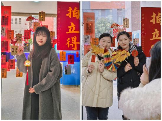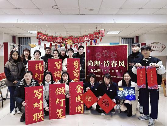 为不断强化“以学生为中心”的育人理念,进一步提升围绕学生、关照学生、服务学生的工作质量,贯彻习近平总书记对宣传思想文化工作的重要指示,12月27日下午,理学院在南校区第五学生公寓四号楼举办“尚理·待春风”新春游楼会活动。后勤发展中心周冬梅,理学院五公四楼宇指导教师龚丹,理学院辅导员崔晚词、冀伟,楼宇学生参与活动。该活动由五公四楼委会主办,理学院团委研究生会、心理协会协办。 中华优秀传统文化承载着民族记忆和民族精神,是我们增强文化自觉、坚定文化自信的强大底气。五公四楼委会在2024年即将来临之际,结合中华传统民俗文化,开展了丰富多样的趣味活动,以“一站式社区服务”为理念,将活动深入到宿区各楼层。 进入五公四大厅映入眼帘的是猜灯谜、套圈圈、拍立得区域,精心准备的谜面和谜底引发同学们一阵阵欢笑,大家互相猜谜、分享智慧、趣味十足。