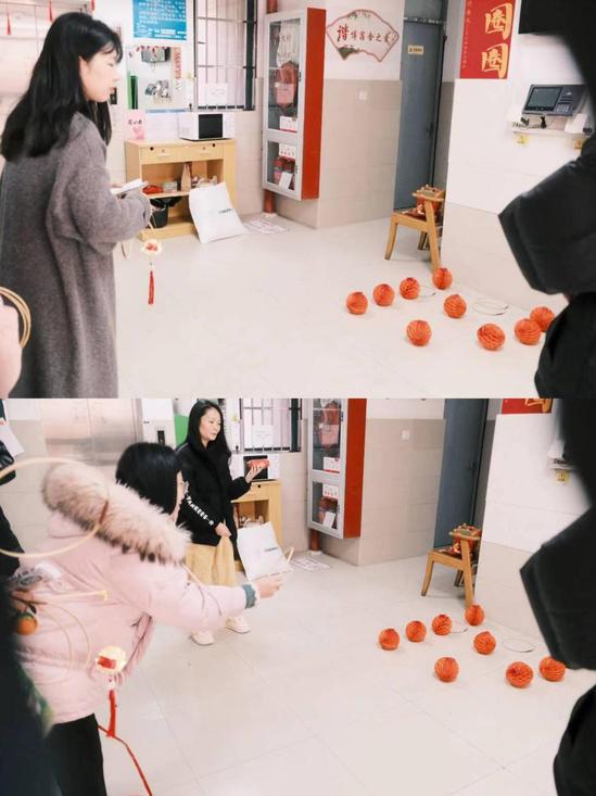 猜灯谜活动现场 套圈是一种投掷套物的传统民俗游戏,每一个带福字的蜂窝花球都蕴藏着神秘的奖品号码,每一次投掷套中“福”球也代表着对同学们的美好祝福。