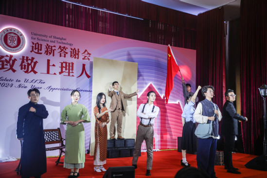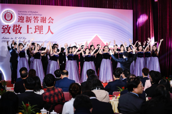 光阴如画,岁月成诗。在即将辞别2023年的时刻,12月27日下午,学校在小礼堂举办“致敬上理人”2024年迎新答谢会,邀请一年来为学校发展做出贡献的师生代表齐聚一堂,通过“线上直播+线下参与”的方式,与全校师生和海内外校友共欢新岁。 答谢会现场张灯结彩,暖意融融,一片欢乐祥和的节日氛围。校党委书记王凌宇和校长丁晓东早早在会场等候师生代表,热情亲切地与每位到场师生逐一握手并合影留念。为了表达致敬和感谢,本次受邀出席的师生代表都收到了来自学校的年度感谢信和特别设计制作的年度纪念版校园卡。 沪江学生合唱团的同学们以一首优美的《春日偶成》开启了整场答谢会,在随后的表演中,民族舞蹈《锦绣中华》和独唱《一杯美酒》展现了多民族文化的别样魅力。京剧《霸王别姬》选段,唱念婉转饱满,做打行云流水。以我校校友李公朴事迹为原型排演的音乐剧《公朴颂》,通过同学们的表演,体现了李公朴“心不死,志不决,和平可期,民主有望”的铮铮誓言与民族大爱。 三位师生代表作新年感言,他们基于自身工作学习经历,分享了自己在平凡中努力创造不凡的心路历程,表达了自己“于无声处听惊雷,于无色处见繁花”,俯身学习和事业的决心。 校长丁晓东在致辞中指出,上理工所取得的种种成就,都是全体“上理人”无私奉献和付出的结果,是广大师生融合非凡的才华、坚韧的毅力、高昂的热情所取得的成就。学校以拥有这样优秀的师生而深感骄傲。新的一年,上海理工大学仍需牢记高等教育使命,为实现教育、科技、人才战略在上海高质量落地作出应有的贡献。 校党委书记王凌宇携全体校领导向全体师生和海内外校友致以新年祝福。王凌宇指出,过去一年,在上海市委、市政府和市教卫工作党委的关心和支持下,“上理人”齐心协力,推动教育事业稳步向前,我们付出汗水,收获成果和喜悦,希望所有“上理人”在新的一年继续勇往直前、无畏挑战,共同创造新的辉煌。