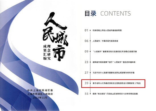 习近平总书记提出“人民城市”重要理念,既指引着中国开辟新时代城市发展新篇章,也引领着我国解决城市问题、应对城市发展挑战、开创城市发展新格局新方向。 《人民城市理念研究成果汇编》是由中共上海市杨浦区委宣传部编制发布,汇集上海市社会科学界联合会、复旦大学、同济大学超大城市精细化治理(国际)研究院、杨浦区委党校等单位关于人民城市建设发展的共计21篇研究成果。我校版艺学院环境设计系系主任李文嘉教授团队完成的“基于老年人行为模式的社区公园包容性设计策略研究”入选。 版艺学院设计学学科勇担新时代新使命,积极践行“人民城市”等重要理念,围绕生态文明、乡村振兴、城市更新、健康中国等国家战略需求,持续关注生态文明、积极老龄化、城乡人居环境等前沿问题。未来版艺学院将主动服务国家战略和经济社会发展,持续产出系列重点研究与设计实践成果,为新时期人民环境的共建共治共享和人居环境高品质发展贡献专业力量。