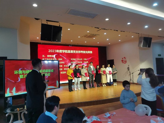 1月12日下午,环境与建筑学院2023年总结表彰暨2024年新年联欢会举行。在学院工会的组织下,学院党政领导班子成员和全体教师共聚一堂,喜迎新春。 使命催人奋进、劳动铸就梦想。过去的一年,学院全体师生守正创新、踔厉奋发,书写着属于自己的精彩和传奇,为学校和学院各项事业高质量发展贡献智慧和力量。院长黄远东宣读了学院考核优秀部门和优秀个人名单并表示祝贺,总结了学院在党建引领、人才培养、队伍建设、教学科研、社会服务、国际交流合作等各方面取得的优异成绩,同时指出了存在的问题。他号召大家在新的一年携手共进、团结奋斗,紧紧围绕学校和学院中心工作再创佳绩。 在学院党委的统一领导下,经过工会和各部门的精心筹备,联欢会节目形式多样、精彩纷呈,由辅导员王木子和王翀担任主持人。建环系青年教师借用名曲《童年》谱上新词,充满苦涩、甜蜜与收获的“青椒那些年”引起了青年教师的共鸣;通过童声rap《上下五千年》,回顾了中华五千年的悠久历史和灿烂文化。环境系师生通过旋律悠扬的《贝加尔湖畔》描绘出贝加尔湖的美丽与宁静,令观众沉醉在如画的风景中;童声诗朗诵《沁园春·雪》带领大家感受一代伟人毛泽东的博大情怀以及祖国的壮丽山河。实验室及院办共同推出的《安全之歌》,以诙谐的方式唱出“时时放心不下”的精神状态和安全稳定无小事的工作理念。学工办组织研究生团队朗诵《时代之青年,民族之希望》,诠释了青年人的使命与担当。土木系教师带来一曲优美的《吹梦到西洲》,充满了浪漫的意境和对美好生活的憧憬。主持人还精心设计了几个小游戏,将现场的气氛推向高潮。 学院工会原主席吕静和现任主席常飞回顾了学院第七届工会委员会成立和联欢会筹备过程,感谢各位领导和老师们的大力支持,并表示尽全力为学院教师提供高质量服务。 学院党委书记卢萧对2023年基层党支部考核优秀人员进行了表彰,对全体教师过去一年的辛苦付出表示真挚感谢。她强调,困难和机遇交织并存,学院更需要抓住机遇,加强预研和谋划,强化师资队伍建设,促进学科协调发展。星光不负赶路人,最是“坚持”动人心。回望2023年,我们砥砺奋进,奔赴2024年,愿全体环建人乘势而起,奋发有为。 2023年总结表彰暨2024年新年联欢会表彰先进、树立典型,激励全院教师奋发向上、开拓创新,也为教师们提供了展示自我、增进交流的良好平台,极大提高了教师的向心力和凝聚力,为新一年各项工作的顺利开展打下了坚实的基础。