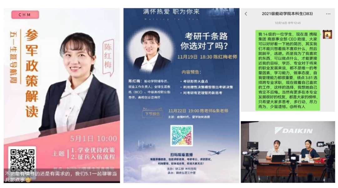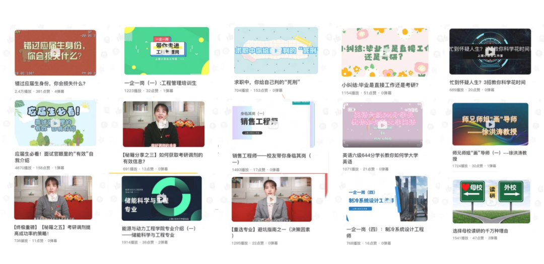 陈红梅生涯教育宣传海报 UP主播创新路,让生涯引领活起来 面对传统的载体和方式受到时间、空间、精力等因素的限制,陈红梅积极创新,主持组建“职领未来”陪伴成长工作室”,将“职业生涯教育”“精准化服务”“新媒体视角”三者有机结合,致力于立足时代背景、落脚生涯教育实际,充分运用新媒体新技术,推动生涯育人、服务工作与信息技术高度融合,聚焦核心优势,打造生涯教育精品内容,做好品牌建设。 B站平台成为陈红梅老师和学生沟通的又一座桥梁。工作室以B站为平台,从把脉需求、精准服务、内容供给、实用至上、坚持问题导向、输出精品内容等方面开展探索和实践,将学生遭遇的现实问题与生涯教育的重要主题相结合。集合学生、专业教师、校友、企业人士、行政人员等各种优质资源形成团队,融入到微视频的制作与推广,通过“每周一更”的持续推送打造线上的生涯教育精品资源库,将生涯教育资源送到全校学生身边,切实提升职业生涯教育的科学性和有效性。仅一年,陈红梅便围绕“生涯教育”,精心设计“生涯解惑”、“大学生活”、“职场导航”、“漫话导师”等多个模块,积极回应大学生在不同阶段、不同时间节点在生活、学业、生涯发展上遭遇的普遍疑难与个体困惑,激发学生们的观看兴趣,切实增强生涯教育的影响力与渗透力。截止2023年10月,已经发布视频73个,拥有粉丝数2000+,播放量超12万人次。
