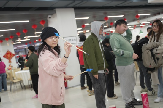 市教委领导看望留校学生并参加师生代表座谈会 火红的灯笼、喜庆的窗花、可爱的吉祥物,校园里被留校师生们装扮得喜气洋洋、氛围浓厚、年味十足。研究生工作部、学生工作部(处)和能源与动力工程学院、健康科学与工程学院精心准备的新春年俗活动让同学们感受到浓浓的年味。挥毫泼墨、行云流水,师生们在红彤彤的纸上,苍劲有力、潇洒自如地书写新春祝福,饱含满满心愿的对联跃然纸上。剪窗花、做灯笼、做香囊福袋,师生们根据自己的喜好进行裁剪、搭配、装饰,大家将幸福安康、吉祥如意等美好祝愿满满地融入其中。投壶、套圈、掷沙包、猜灯谜、包饺子以及各类闯关游戏站点人头攒动、氛围热烈,现场欢声笑语、热闹非凡,师生一同感受了传统节庆的文化氛围和艺术魅力。