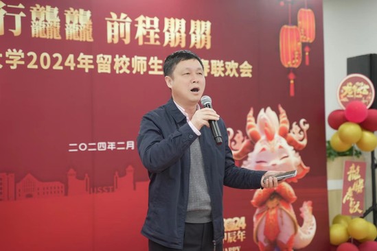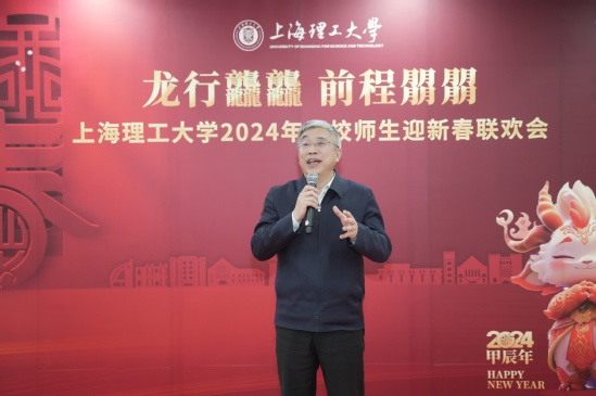 瑞雪纷飞兆丰年,龙行龘龘迎新春。为弘扬传统民族文化,让留校的上理学子暖心喜气过大年,2月3日,在小年来临之际,学校特举办2024年留校师生迎新春联欢会,校领导王凌宇、丁晓东、盛春、赵宁、蔡永莲、张华等与留校学生500余人齐聚一堂,喜迎农历新年。学校相关职能部处负责人、各学院学生工作负责人和辅导员代表一同出席活动。