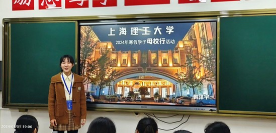 朱晓平和家人在一起 母校行,和高中学弟学妹们讲讲“上理故事” 龙腾盛世,喜迎春来。基础学院韩泽宇这个寒假参加“寒假学子母校行”活动,以上理招生宣传大使的新身份重返母校同煤一中,讲述她眼里的“上理故事”。“宣讲过程中,我从历史底蕴、校园文化,到学科水平、科研创新几个方面介绍学校,给学弟学妹们看了上理宣传片《与“理”相遇》,并且建立微信群进行长期宣传。在宣讲过程中还无意中吸引到其他班级学生的旁听与咨询,觉得特别自豪!”