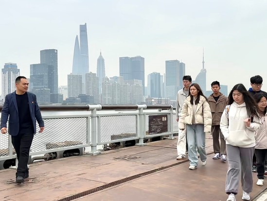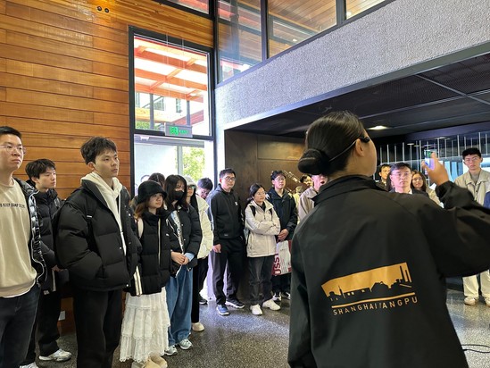 邢中先老师在留法勤工俭学运动浮雕墙前讲解 “工业锈带”蝶变为“生活秀带” 杨浦滨江岸线全长15.5公里;南段滨江西起秦皇岛路,东至定海路桥、北至平凉路、南至黄浦江,岸线长5.5公里。本次“行走的党课”路线为杨浦滨江南段部分,南段滨江公共空间于2019年全线贯通对外开放。马克思主义学院程恩慧老师生动地向同学们介绍滨江沿岸的工业历史和红色故事,沿途走过的怡和纱厂旧址是当年上海红色工人运动的阵地;杨树浦水厂是中国第一座现代化的自来水厂,上海解放时杨树浦水厂曾是护厂运动的“主战场”;毛麻仓库的前身是德商瑞记纱厂,升级后的毛麻仓库是一座集艺术、文化、科教为一体的展览公共空间……一座座百年工业建筑的活化利用,打造成极具特色的空间场域,书写着新旧篇章的和谐共生。