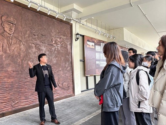 百年前,一批批热血学子从黄浦码头出发,赴法探采救国救民火种……百年后,上海理工大学马克思主义学院师生踏着先辈负笈求学的足迹,从百年红色码头再次“起航”,沉浸式学习红色历史,边走边学,共上一堂“行走的党课”,实现了思政课从课堂走进红色历史场域的创新教学模式。 黄浦码头,初心起航地 1919年至1920年间,先后六批学生共计656人从黄浦码头乘船赴法留学,其中包括周恩来、邓小平、聂荣臻、蔡和森等革命前辈。在秦皇岛路码头一层的留法勤工俭学运动浮雕墙前,马克思主义学院邢中先老师绘声绘色地为同学们介绍了一百年前一批批青年学子从这里出发,留法勤工俭学,追求新知的历史事迹。让同学们不忘历史,回望初心、感悟初心、坚守初心。