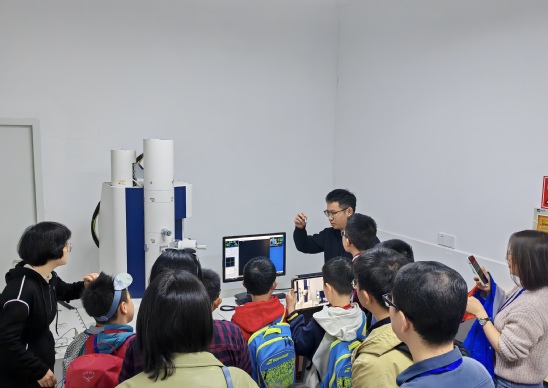 3月30日上午,来自上海小学、建平实验小学、华二附中前滩学校、华江中学等沪上9所中小学校的小朋友在家长的陪同下一起走进上海理工大学,体验高校科创氛围、品读红色校史文化,沉浸式感受大学校园的生机与活力。 在材化学院赵月峰老师的带领下,小朋友们首先来到了位于化学实验中心一楼的透射电子显微镜实验室。通过透射电子显微镜可以看到在光学显微镜下无法看清的纳米尺度的细微结构。在实验室研究生学长的指导下,小朋友们自己动手操作透射电镜观察提前准备好的乳白色试剂。只见一个个排列整齐的原子展现在显示屏上,再放大数倍后可以清晰的看到原子表面不规则的纹理。“这是我第一次用大型实验仪器观察微观世界!”小朋友们兴奋地说道。 “铋可能是元素周期表中最奇特和最被低估的元素之一……”跟随赵月峰老师的步伐,小朋友们来到位于中心三楼的上海健康医学高端材料科创基地(上海理工大学铋科学研究中心)一边参观文化走廊,一边听着赵老师的讲解了解铋元素背后的奥秘。“铋可用于医学造影和辐射防护;有抗菌作用,常用作胃药(胃铋泰)或抗菌材料;它有抗癌作用,可制备抗癌药物和肿瘤的纳米增强治疗……”随后小朋友们在博士生学长的带领下运用生活中常见的水、柠檬汁、苏打水、橙汁、雪碧、大理石等材料动手做“怎样才能冒泡泡”的趣味酸碱反应实验。 实验活动后,在宣传部老师的带领下小朋友们参观了刘湛恩烈士故居红色文化主题馆,在红色历史中感悟先辈爱国奉献、砥砺奋进的精神。
