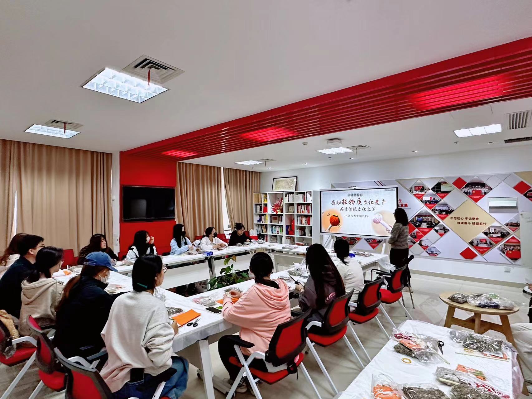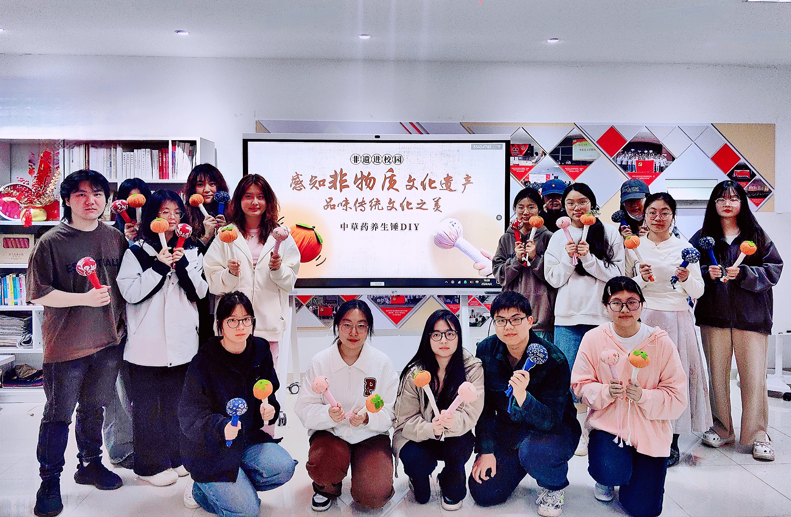 为进一步弘扬中华优秀传统文化,传播健康生活理念,4月7日下午,出版学院举办制作“中药艾草锤”活动。活动由传统文化工作坊党支部、设计类本科学生党支部承办。 一株小草改变世界,一枚银针联通中西,一缕药香跨越古今。中医药文化是中华优秀传统文化的瑰宝,是优秀传统文化的重要组成部分。活动现场,非遗老师向大家介绍了中药艾草锤的历史渊源及艾草药效,展示了中药艾草锤制作所用的材料和制作过程。大家兴致勃勃地开启了中药艾草锤手工大挑战,捏紧药包、放入木柄、包裹棉布、缠绕棉线……很快,一个个充满艾草香味的中药艾草锤便制作完成。随后同学们也结合自己的专业就传统文化的创造性转化、创新性发展等问题进行讨论和思考。 古法造物,美育情怀。通过本次别开生面的美育体验,同学们在传统与现代的交融中感受到心灵的愉悦与满足,体验到传统文化的魅力与价值。出版学院一贯重视美育浸润,在学院关工委的指导下开展“非遗进校园”系列活动,将优秀的非遗项目引进了部分校园,陆续培养了一大批喜爱非遗、热爱非遗、掌握非遗制作技能的学生,青年学生对非遗的认识程度得到明显提高。依托校园浸润,非遗的生命力和创新性均得到增强。