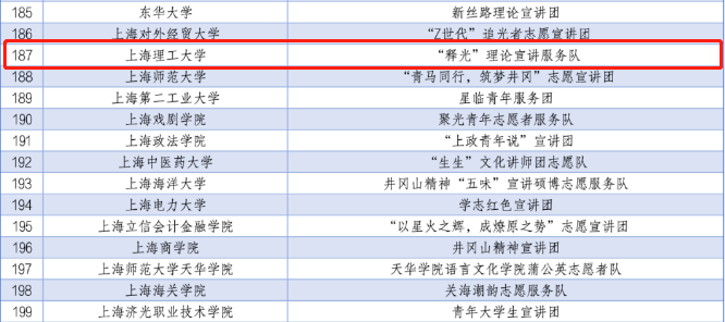 近日,共青团中央青年志愿者行动指导中心、全国青少年井冈山革命传统教育基地管理中心近日联合发布了《2024年全国大学生井冈山精神志愿宣讲团入选团队名单》,我校光电学院“释光”理论宣讲服务队入选。 “释光”理论宣讲服务队依托光电学院本科生第六党支部建立,10名成员皆为该支部的党员。近年来,团队围绕学习宣传习近平新时代中国特色社会主义思想主线,突出党的创新理论“青年化”阐释主题,引导新时代大学生讲党的初心故事、做红色基因传承人。团队开发理论宣讲微课程曾荣获第五届全国高校大学生微电影展示活动优秀奖、2023年“知行杯”上海市大学生社会实践大赛三等奖和上海市大学生理论宣讲社团优秀案例等。入选后,团队将以学习宣传井冈山精神为内容,以突出党的创新理论“青年化”阐释为方向,通过实施实景式体验党课、浸润式红色党课、团体式朋辈传承和服务式先锋引领为路径,开展理论宣讲进学班级、进支部、进学生组织、进社区。 【相关】 为深入学习宣传贯彻习近平新时代中国特色社会主义思想和党的二十大精神,落实“强国复兴有我”群众性主题宣传教育活动相关要求,引导动员青年学生大力弘扬井冈山精神,此次共遴选出来自北京大学、北京航空航天大学、上海理工大学等882所高校的1000支大学生志愿服务团队。