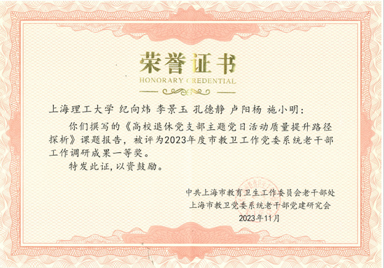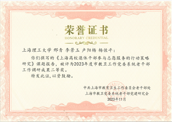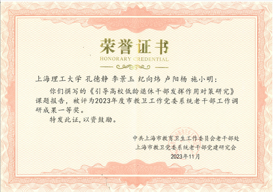 4月10日,市教卫工作党委系统离退休干部工作会议在上海教育报刊总社召开。市教卫工作党委副书记张艳萍,市教卫工作党委二级巡视员、老干部处处长金勤明出席,会议由市教卫工作党委老干部处副处长田永杰主持。系统高校、市卫健委、申康医院发展中心等单位离退休工作部门负责人、离退休干部党建职能部门负责人约60人出席会议。 会议对2023年度市教卫工作党委系统老干部工作优秀调研成果进行了表彰,我校老干办主任、离退休党委书记李景玉上台领奖。我校共上报2023年度老干部工作调研课题5项,其中《引导高校低龄退休干部发挥作用对策研究》《高校退休党支部主题党日活动质量提升路径探析》两项课题获一等奖,《上海高校退休干部参与志愿服务的行动策略研究》获二等奖。