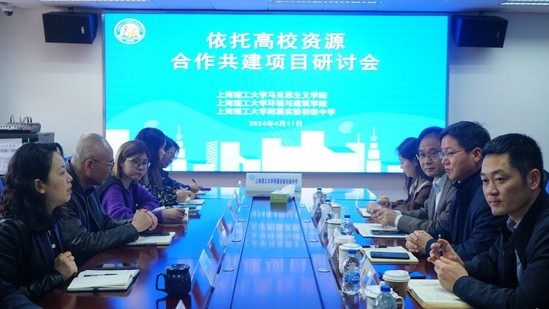 4月11日上午,马克思主义学院党委书记李杰、副书记吴军,环境与建筑学院党委副书记曹桂馥一行到上海理工大学附属实验初级中学开展合作共建交流,马克思主义学院团委书记彭高,环境与建筑学院团委书记殷洁如、青年教师李飞鹏一同前往。上海理工大学附属实验初级中学党支部书记、校长吕黎明,党支部副书记吴建军,副校长李远,德育主任郭洁娴,教导副主任李东,团总支书记、大队辅导员张业韵,道德与法治教师李樱,生命科学教师、跨学科教学负责人陈雅珺参加交流。 双方召开了“依托高校资源合作共建项目研讨会”。会上,吕黎明介绍了该校正在推进的“三全育人”高标准育人项目概况,重点介绍了支撑该项目的初中生学习空间打造、家校社协同推进党员队伍建设、一校一基地、思政政工师进校园等专项行动,也介绍了长期以来与上海理工大学及各学院开展的合作与交流情况。同时,吕黎明希望在推进上述项目的过程中加强与上海理工大学马克思主义学院、环境与建筑学院的合作,进而取得显性实效。 李杰在讲话中针对“三全育人”高标准育人项目以及支撑该项目的初中生学习空间拓展、一校一基地、思政政工师进校园等行动,结合该校实际,提出了切实建议,强调要聚焦重点,凸显特色,充分利用现有资源来打造品牌,注重校内空间与校外空间的结合、理论教学与实践教学的融合、教师引导与学生参与的互动。 会上,围绕思政一体化、党的创新理论宣讲、初中生校外实践学习空间打造、水文化思政馆的优化,吴军、曹桂馥和李飞鹏也提出了切实建议,附属实验初级中学的与会领导和老师给予积极回应,双方展开了切实深入的讨论和交流。双方就进一步合作达成共识。 会前,我校一行参观了该校水培植物馆、围棋馆、水文化思政馆等特色学习空间。