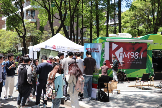 2024上海市境外安全文明行校园大赛(初赛)报名火热进行中,国际交流处积极响应号召,于4月24日下午在校内举办了一场别开生面的宣传活动。主办方以新颖的“电台直播车”形式走进校园,与师生亲密互动,利用媒体优势,生动形象地向广大师生传播境外安全文明行理念。本次活动得到了大赛组委会、上海人民广播电台和中国银行上海分行工作人员的大力支持。