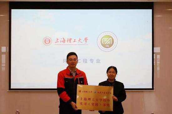 签约仪式 环境科学与工程系系主任陶红与竹园污水公司党支部副书记陆巳欣共同为校外实习实践基地揭牌。陶红提到,此次合作是双方关系的一个新起点,未来将进一步加强联合培养学生、推动科研合作,并通过共建实践基地,增强学生的实际工作能力和就业前景。