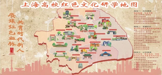 手绘版“上海高校红色文化研学地图”发布 为了让红色文化的“打开方式”更加多元、更加鲜活,来自上海理工大学、上海师范大学、上海理工大学附属初级中学、国歌展示馆、上海电影艺术职业学院等院校和红色场馆的师生,充分发挥各自优势,编排出红色校史剧《公朴颂》、情景党课《天边有颗闪亮的星》、红色文化传承剧目《芦荡火种》、音乐思政《为国而歌》等极富感染力的剧作,用大中小学生喜欢的方式讲好党的故事、革命的故事、英雄的故事,以创新的叙事方式和话语体系为红色文化育人赋能。