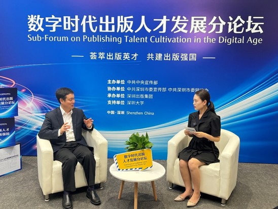丁晓东作主题演讲 在分论坛期间,丁晓东接受了中国出版传媒商报的(视频)专访。他表示,科技兴国、文化强国是时代的必然选择,高校要主动对接文化强国战略,加快文化的数字化赋能,深入推进文工艺交叉融合。出版关乎国家文化软实力,肩负着国家文化内容生产与传播的重任,是迎接和拥抱数字化机遇和挑战的重要领域,数字时代背景下探讨出版人才有何新要求、如何培养数字出版人才、如何推进出版产业与人才的双向奔赴等话题具有重要意义。在谈到出版人才引进、培养和发展时,他表示,在教育、科技、人才三位一体协同发展的格局中,人才是动力源泉和关键要素,培养高质量人才是出版教育工作的重点。学校注重推动出版与学校理工科的融合,以跨学科平台和团队引人育人;以破学科的圈、破产教的圈、破技术的圈的“破圈”方式,培育具有较高数智素养、数智能力的跨学科出版人才。在谈到人工智能时代,何为优秀出版人才时,他表示,要注重拥抱AI,以数字技术丰富出版的内容与形式,全方位赋能出版,抢占数智时代出版发展制高点;要能够理解并高效、精准、符合伦理地使用智能技术,善用智能辅助创作、决策、营销、服务。