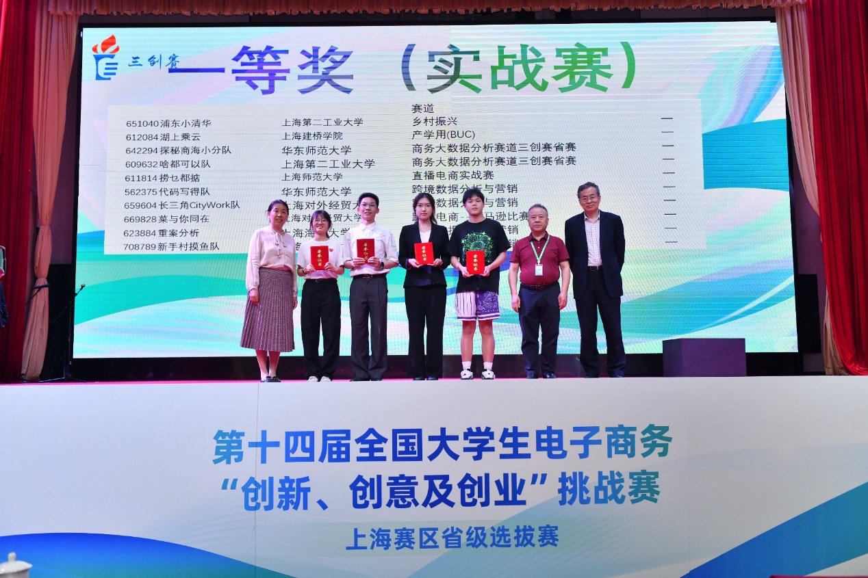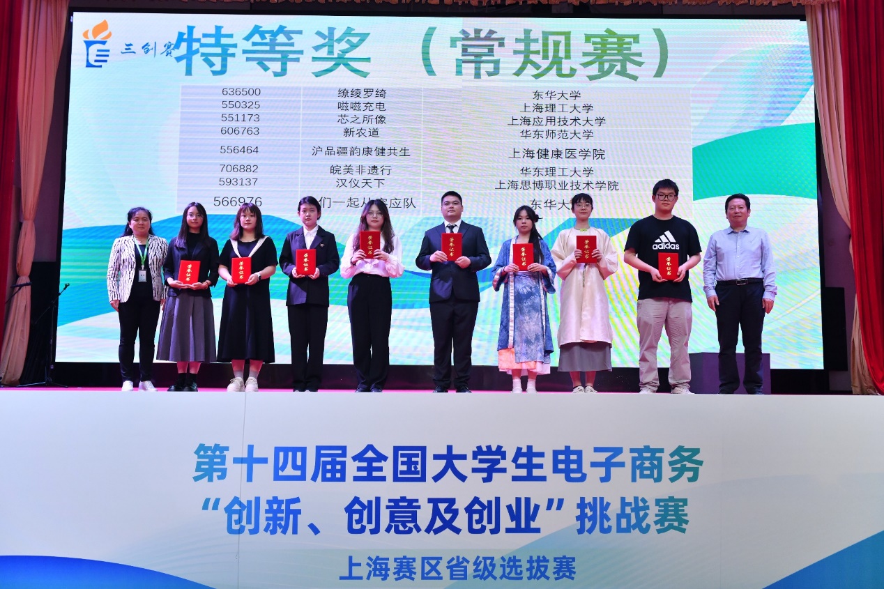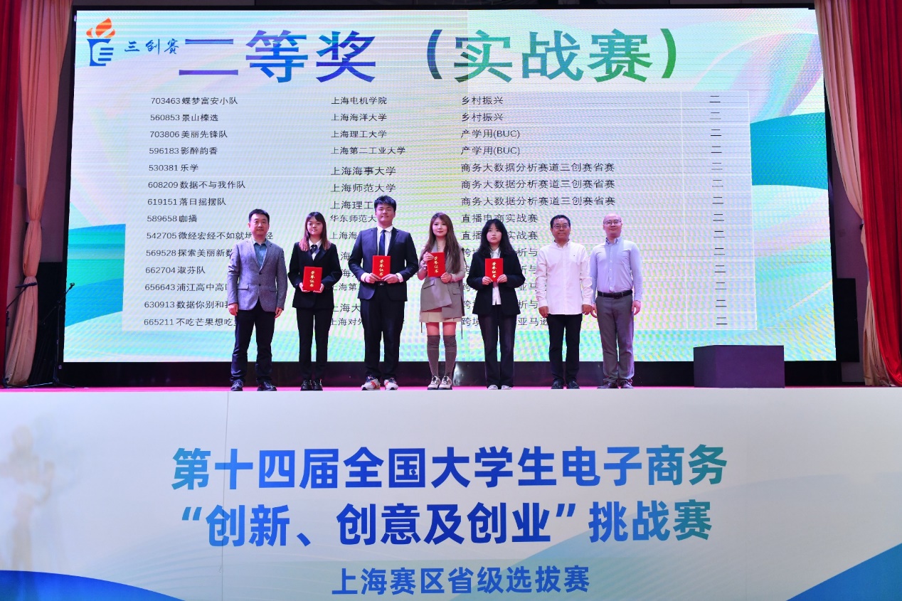 本次比赛共吸引了1980支队伍报名参赛,经过严格的筛选和评审,最终有240支队伍脱颖而出,入围并分为10个组进行激烈角逐。开幕式后,开始了一天紧张和激烈的分组小组赛、终极赛环节。来自全市各高校的参赛选手们在紧张而激烈的氛围中展开比拼。每个团队都凭借精彩的演讲和答辩,充分展示了他们在电子商务领域的创新、创意和创业能力,为电子商务领域的发展注入了新的活力。评委们对参赛队伍的专业素养和团队精神给予了高度评价,并对部分优秀项目提出了宝贵的建议和指导。经过一整天激烈比拼,最终常规赛道评选出了特等奖8支、一等奖48支、二等奖56支;实战赛道评选出一等奖11支、二等奖14支。常规赛道中诞生的8支特等奖队伍进行终极赛的角逐,充分展现他们的卓越实力。