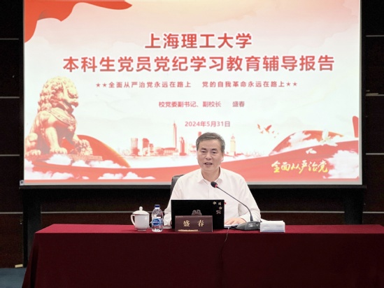 盛春作报告 此次专题辅导报告围绕《条例》修订,通过专业的讲述、生动的案例、切身的感悟使广大本科生党员充分了解了《条例》的具体内容。我们要把学习贯彻《条例》作为重要政治任务,以严明的纪律推进党的自我革命,不断提升党员干部的政治素养和拒腐防变能力,使廉洁自律规范内化于心、外化于行,坚定理想信念、增强宗旨意识、严格遵守法律法规,守住纪律“底线”、不越“红线”,切实以学纪、知纪、明纪、守纪的优良纪律作风保障高质量发展。