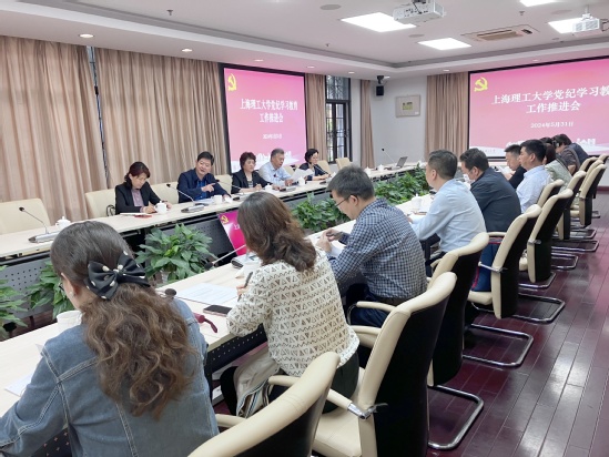 为进一步贯彻落实上海市委和市教卫工作党委党纪学习教育工作专班工作要求,推动学校党纪学习教育走深走实,5月31日下午,学校在格致堂108会议室召开党纪学习教育工作推进会。学校党委副书记孙跃东、学校党纪学习教育专班负责人、各二级党组织书记等参加会议。会议由孙跃东主持。 会议总结了前一阶段学校党纪学习教育各项工作开展情况。自党纪学习教育开始以来,学校党委高度重视,把抓好党纪学习教育作为当前重要政治任务,第一时间召开学校党委全面从严治党工作会议暨党纪学习教育部署会,成立工作专班,制定实施方案和整体活动会议安排表。强化“实”的要求,分层分类发布工作提示7期,加强学习资源供给,丰富学习形式,学校各二级党组织认真贯彻落实学校党委安排部署,结合工作实际,精心组织,切实推动广大党员做到学纪、知纪、明纪、守纪,进一步强化纪律意识。 会议传达了上海市委和市教卫工作党委党纪学习教育工作专班近期工作通知,要求各二级党组织要认真学习领会习近平总书记关于全面加强党的纪律建设的重要论述,力戒形式主义、官僚主义,严防“低级红”“高级黑”,层层压实责任,切实加强对基层党支部的指导督导,保质保量完成各项任务。 就抓好下一阶段党纪学习教育,孙跃东提出三点要求:一是严格对标对表,在深学细悟上下功夫。各二级党组织要严格落实习近平总书记有关重要讲话、指示批示精神,准确理解上级文件要求,通过理论学习中心组学习、“三会一课”、主题党日等方式,抓好原原本本学,逐章逐条逐字学《条例》,真正使学习党纪的过程成为增强纪律意识、提高党性修养的过程。二是将党纪学习教育与廉洁教育、党性教育相结合。各二级党组织要用好上海的红色教育资源,充分利用好刘湛恩烈士故居红色文化主题馆等校内红色教育基地,开展党性党纪教育。通过集中参观警示教育基地、观看警示教育片等方式开展警示教育,提高党员师生廉洁自律意识,营造崇廉拒腐的良好风尚。三是坚持两手抓两促进,切实把党纪学习教育转化为推进学校中心工作的有效举措。各二级党组织要把开展党纪学习教育与工作作风、师德师风、校风学风建设结合起来,与学校高质量发展三年行动计划和高水平大学建设任务结合起来,切实将党纪学习教育成果转化为推动学校事业高质量发展的实际成效。