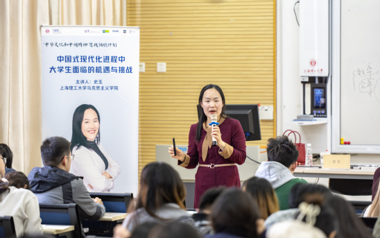 为深入做好新时代大学生思想政治教育工作,擦亮育人底色,中英国际学院在本学期开展“中华文化和中国精神”思政领航计划,通过创新思政教育模式,打造特色德育课程,树立学生文化自信,培养中华优秀传统文化的忠实传承者和在国际舞台上的弘扬者。 牢记青年使命,在中国式现代化进程中把握时代机遇 青年强则国家强,马克思主义学院副教授、经济学博士史玉老师应邀作“中国式现代化进程中大学生面临的机遇和挑战”专题讲座2期,两百余名学生到场聆听。史玉老师聚焦时代背景,为同学们详细介绍了当今的世界格局和我国的发展方向以及构建人类命运共同体的重要性,带领同学们纵观自改革开放以来我国的发展进程。她向同学们讲解了何为“中国式现代化”以及大学生面临的机遇和挑战。随着工业化和城镇化进程加快,机遇与挑战并存。面对就业压力增大、AI代替人工等挑战时,大学生只有增强自身专业技能,培养创新思维,方能把握时代机遇,肩负中华民族伟大复兴的历史责任。