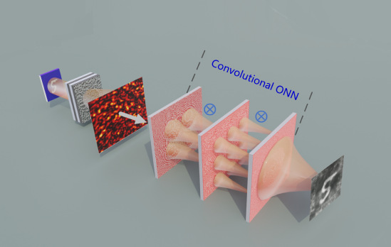 近年来,日新月异的人工智能技术不断推动着社会进步和产业变革,其中卷积神经网络(CNN)以其卓越的图像识别能力,在人工智能技术领域,特别在ChatGPT中表现极为出色。近期,一项突破性的科研成果将卷积神经网络的概念引入光学领域,为人工智能成像技术带来了革命性的进展。 由上海理工大学智能科技学院、张江实验室光计算所所长顾敏院士和张启明教授领衔的研究团队,开发了一种超快速的卷积光学神经网络(ONN),这一技术在无需依赖光学记忆效应的情况下,实现了对散射介质后的物体进行高效、清晰的成像。这不仅是对传统光学成像技术的一次颠覆,更是卷积网络在人工智能中应用潜力的一次深刻展示。该成果于6月14日以 “基于超快卷积光学神经网络的非记忆效应散射成像(Memory-less scattering imaging with ultrafast convolutional optical neural networks)”为题发表于《科学》(Science)子刊《科学进展》(Science Advances)上,智能科技学院张雨超特聘研究员为第一作者,顾敏院士和张启明教授为共同通讯作者。 卷积神经网络作为目前为止应用最为广泛的指一种人工智能神经网络架构,它由生物的视觉皮层系统发展而来,视觉皮层结构由Hubel和Wiesel于1981年所提出,并获得了诺贝尔奖。卷积操作作为卷积神经网络中的核心,通过提取图像的局部特征并逐层构建更为复杂和抽象的特征表示,极大地推动了图像处理和模式识别领域的发展。然而,将这一概念应用于光学领域,面临着将电子信号转换为光学信号的挑战。研究团队巧妙地设计了一种全光学的解决方案,通过在光域中直接进行卷积网络操作,省去了繁琐的信号转换过程,实现了真正的光速计算。 这项技术的关键在于构建了一个多阶段的卷积网络,它由多个并行核心组成,能够以光速进行操作,直接从散射光中提取特征,实现图像的快速重建。这一过程不仅极大地提高了成像速度,还显著增强了成像质量,使得在复杂散射环境中的成像成为可能。同时,卷积光学神经网络的计算速度达到了每秒1570万亿次操作(1.57 Peta operations per second, POPS),为实时动态成像提供了强大的支持。 此技术另一大亮点是其多任务处理能力。通过简单地调整网络结构,同一卷积光学神经网络能够同时执行多种不同的图像处理任务,如分类、重建等,在光学人工智能领域尚属首次。张启明教授提到:“这种灵活性和效率的结合,不仅展示了卷积网络在人工智能中的重要性,也为光学成像技术开辟了新的道路。” 这项技术的问世,不仅是对卷积神经网络在光学领域的一次成功移植,更是对人工智能成像技术的一次重大推动。顾敏院士指出:“随着技术的不断发展和完善,我们有理由相信,卷积光学神经网络将在自动驾驶、机器人视觉、医学成像等多个领域将发挥更加重要的作用,为人类的生活带来更多便利,为科学研究提供更强大的工具。这是卷积网络的力量,也是人工智能的魅力。”
