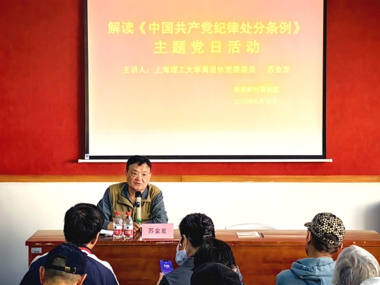 自党纪学习教育开展以来,离退休党委结合老同志实际,以个人学、专题学、警示学、宣讲学等多种形式开展党纪学习教育,引导广大离退休干部党员学纪知纪明纪守纪。 依托在线报告会,组织个人自学。离退休党委充分运用“离退休干部工作”“上海老干部工作”“上海基层党建”等微信公众号和“上海老干部”APP、学校官网、学习强国等学习平台,及时做好中组部、市委老干部局、市教卫老干部处举办的在线报告会的学习收看工作。从4月初自6月20日,离退休党委通过退休支部书记工作群发布《强国建设、民族复兴伟业的坚强纪律保障——深入学习<中国共产党纪律处分条例>》全市离退休干部在线报告会及“《中国共产党纪律处分条例》(以下简称《条例》)修订的历史沿革”学习推文等近20场(篇),为老同志提供学习辅导资料和主流媒体的专家解读文章,供老同志随时随地学习,进一步强化纪律意识、加强自我约束。支部还对行动不便的老同志送学上门,确保党纪学习教育全面、有效覆盖。