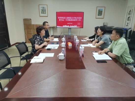 6月18日,上海师范大学机关党委书记曹诚一行来访,与我校机关党委座谈交流。 孙红代表学校机关党委对曹诚一行来访表示欢迎。孙红介绍了我校机关党委的基本情况和近几年工作开展情况,她重点介绍了2020年以来机关党员学习贯彻党的二十大精神,在服务学校事业高质量发展中发挥带动工作情况,特别是机关党委组织机关党员开展“三学”(围绕主线学、带头率先学、知行合一学),做好“三建”(建设上下贯通执行有力的机关党组织、建成全面过硬的战斗堡垒、建强高素质党员队伍),推进“五行”(“创全有我”行动、“调查研究”行动、“问计求智”行动、“结对共建”行动、“我为群众办实事”行动),将理论学习与工作实践紧密结合,把机关党员干部的责任担当落在全心全意为师生服务的行动中,践行校党委“五个人人”校园建设的情况。 曹诚介绍了上海师范大学机关党委着力增强组织功能建设的实践经验。双方表示,今后两校机关党委要进一步加强沟通交流,互学好的工作经验和做法,推动机关党建工作质量进一步提升。 双方围绕机关党支部党建责任制如何落实、如何发挥机关干部带头示范作用、如何提升机关党建质量等工作进行了深入的交流和探讨。