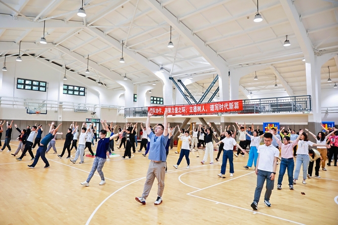 孙跃东、盛春、各职能部门负责人共同鸣笛宣布素质拓展活动正式开始。本次素质拓展活动共有150余名教师组成6支代表队,设置了集趣味性和竞技性为一体的6个竞赛项目,既有团队合作的趣味拔河、万众一心、勇往直前、水果连连看等集体项目,也有大家喜闻乐见的趣味沙盘等适合发挥特长的个人对抗赛,赛事还特邀国家一级运动员、国际田联一级教练员、我校高水平田径队教练员,来自体育教学部的仇周亮老师带领大家进行了充分的赛前热身。