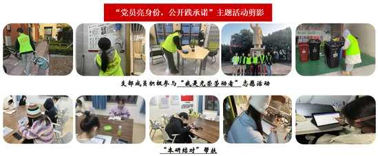 支部部分成员合影 立足专业特色,打造基层“土木铁军” 支部不断激发组织活力,每学期初每名党员为身边群众公开承诺服务一件实事,统筹推进党建和育人各项工作,在解决民生问题、服务基层一线实践中充分发挥党建引领作用,强化科技支撑能力,打造基层“土木铁军”。 支部副书记李乃义同志加入到上海理工大学研究生“红色先锋实践团”,于松江区泖港镇黄桥村进行驻村实践工作,担任村内网格员一职,围绕新型乡村社区治理中面临的问题开展实践调研工作,认真完成驻村任务,实践项目获评“知行杯”上海市大学生社会实践大赛一等奖;支委张靖怡同志在学业帮扶和志愿服务中积极投入,为本科生提供学业指导和心理支持,同时积极参与学校“我是光荣劳动者”志愿服务活动,志愿时长32小时,包括垃圾分类、食堂协助刷卡、清洁教学楼等,为学校的良好运行和协调发展做出了积极贡献.....一名党员一面旗帜的成效逐渐凸显,支部成员的服务范围已覆盖至“创全有我——校园文明啄木鸟”“我是光荣劳动者”、驻村调研、社会实践、学业帮扶、先锋宣讲团、考研辅导、科创指导、体育赛事、关爱社区特殊群体等多个领域,支部党员的身影和星火之光闪现在校园和社区的多个角落,多个部门和社区为支部和党员发来感谢信,感谢支部成员的辛勤付出和无私奉献,也为相关单位带去了关爱帮扶和奋进力量。