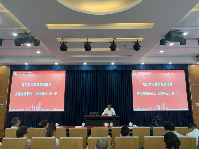 校党委副书记、纪委书记赵宁以“学习贯彻党章,坚定理想信念”为题作首场专题辅导报告。赵宁结合党的百年发展史,深刻阐释了加强党的纪律建设的重要性,解读了党纪学习教育的重要意义。他指出,中国共产党高度重视党的纪律建设,在百余年发展历程中,党的纪律逐步建立健全,纪律建设持续深入,有力维护了党的团结统一。新时代以来,以习近平同志为核心的党中央把纪律建设纳入党的建设总体布局,深入推进全面从严治党,为党和国家事业蓬勃发展提供了坚强保障。广大辅导员要准确把握立德树人根本任务,坚持把政治纪律摆在首位,把讲政治贯穿于办学治校全过程,牢牢掌握意识形态主动权,将党纪学习与党史学习贯通起来,从党的纪律发展史中汲取营养,深刻认识党的纪律建设的重要性,切实把思想和行动统一到党中央决策部署上来,推进党纪学习教育走深走实。