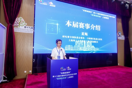 刘霆轩致辞 夏鲲介绍了本届研电赛上海赛区的筹备情况,强调了赛事规模创历史新高、社会影响持续增加、高校特色鲜明和科技创新趋势显著等特点,并详细说明了赛事的组织、安全、服务和效果保障工作,最后预祝大赛圆满成功,参赛队伍在全国赛事中取得佳绩。