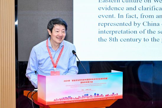 张乐主持开幕式 会议期间,与会专家围绕“中西比较哲学和中国哲学研究”“中西对话中彰显的中华文化独特魅力”“比较文学与英美文学研究”“中外语言文化研究”“中国传统文化国际化研究现状”“中华文明海外传播及其策略研究”等主题展开了深入交流与研讨。多位知名学者发表了精彩演讲,分享了最新的研究成果与独到见解,为中西文化的深层次交流与互鉴提供了宝贵的思想资源。 近期,大会的发起者、大会主席、上海理工大学特聘教授、外语学院中外文化研究所名誉所长、美国夏威夷大学终身教授、国际诠释学研究院院士成中英教授不幸逝世。大会组委会受成中英教授夫人顾林玉教授的委托,特在开幕式后设立追思会,成中英教授生前好友、同事从各地前来共致哀思,由《中国哲学季刊》助理编辑潘松担任主持。武汉大学哲学学院人文社科讲席教授陈波,北京市社会科学院国学研究中心主任刘伟见教授,以及中国现代外国哲学学会名誉理事长江怡教授分别介绍成中英教授在西方哲学、中国哲学以及中西比较哲学上的贡献。成中英教授生前好友陈卫平教授、潘德荣教授和施永敏先生分别发言。