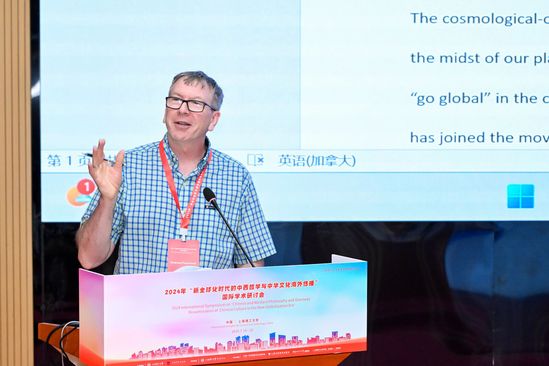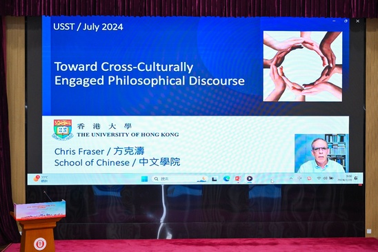 Chris Fraser做线上主旨发言 本次大会汇集了来自多个学术领域的专家学者,他们的讨论不仅展示了各自领域的前沿研究成果,也为学术界探索文明互鉴的新视角提供了宝贵的思想碰撞和交流平台。他们指出,文明的多样性不仅丰富了人类历史的面貌,也对今天我们理解和尊重不同文化具有重要意义。上海市外国文学学会副会长、复旦大学卢丽安教授发表题为“当下语境的中国高校人文学科走向”的总结发言,充分肯定大会涵盖的哲、文、史学术价值,强调学术人文的重要性,提倡开展多元人文、公共人文和积极人文的跨文化、跨国别研究。