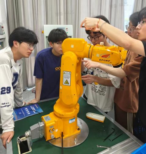 小组合作拆装工业机器人 在行健智能机器人公司,见识智能机器人的精准操作与高效作业能力,每个细节都透露着技术的精湛与创新的力量;在埃夫特智能装备公司,通过丰富的产品线全面了解智能机器人在不同领域的应用;在中国视谷这个视觉智能产业的聚集地,感受科技发展的蓬勃态势,体会智能科技对传统产业的深刻影响和变革……学员黄诗涵表示,研学活动中的智能机器人行业前沿阵地参观之旅,为大家打开了一扇通往未来科技世界的大门,“我会继续关注智能机器人前沿发展动态,努力提升自己的专业素养和创新能力,为推动科技进步和社会发展贡献自己的力量。”