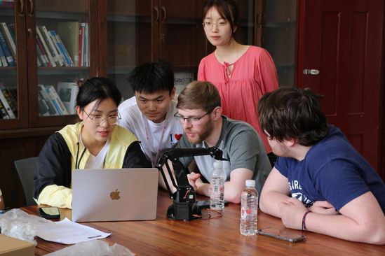 参观埃夫特智能装备公司 此次研学活动由我校与安徽工程大学、常州大学、淮南师范学院等长三角兄弟院校携手共同开展,聚焦工业机器人认知、工业机器人编程、工业机器人应用、行业企业现场研学、素质拓展训练、音乐美育教育等开展相关课程,课程成绩由参与高校互认学分。该活动是长三角高校以“集团军”作战思路打破壁垒、协同合作的高效实践,在优化人才培养模式、实现教育资源共融共通共享、推动产学研一体化等方面取得了显著成果。 交流互鉴,在共创共进中为未来“蓄能” “我们计划完成一款全向轮底盘,它具有全向移动、高速旋转、灵巧等特点,但在装配过程中遇到了零件精度误差过大、小零件缺失等问题……”近日,在中英国际学院开展的“跨文化融合:用科技和商业创造未来”主题国际暑期夏校活动中,来自利物浦约翰摩尔大学工程技术学部方程式赛车队的学生与中英国际学院创新团队携手,以手工加工零件、类似零件替换等方式进行科创项目共创,完成了机器人对抗项目(RoboVigor)的国际项目优化。 在第三届“利物浦在上海文化活动日”活动中,该项目成果与另一项同样由中外学员在夏校期间合力优化的慧净·一体化农业机器人项目(AgriRomer)一起,成为中英国际学院为上海与利物浦建立姐妹城市25周年送上的“双创贺礼”。