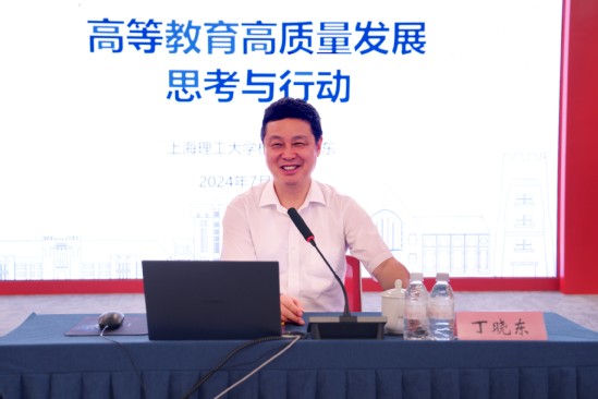 签约仪式 根据协议,鉴于双方紧密的合作背景,为共同助力临港、上海建设成为我国民用航空产业创新发展的重要承载区,上海理工大学与上海电机学院将充分发挥各自的学科科研、师资队伍、区位优势,通过共建航空智能材料与结构研究院,推动在协同创新、团队建设、人才培养等方面深度合作,促进重大科研成果转化应用以及产业基础高级化和产业链现代化。 签约仪式后,丁晓东围绕“高等教育高质量发展思考与行动”作主题报告。