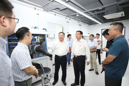 朱新远向逯高清院士颁发荣誉纪念章 讲座结束后,在朱新远的陪同下逯高清一行还参观了能研院实验室。