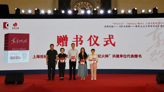学院志愿者工作场景 点燃火种,传递书香,助推共建书香上海 8月16日下午,“世纪火种”共建单位的相关负责同志和集团各直属单位的党建负责同志近80人来到上海书展主会场中央大厅活动区,领取“世纪火种书展专属福袋”,内含《东方欲晓》、书展地图等。出版学院党委书记张华出席此次活动,作为“世纪火种”共建单位代表接受赠书。同时,现场举办题为“光辉启航——《东方欲晓——新民主主义革命记忆》”的图书分享会,并邀请现场观众欣赏上海京剧院的京剧表演《龙潭英杰》选段,感受“书香+音韵”的别样精彩。