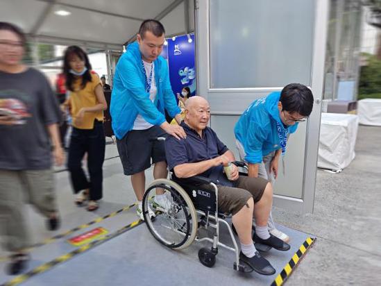 志愿者借助电子导览引导读者 奉献青春,践行志愿服务的责任与担当 出版学子积极践行“奉献、友爱、互助、进步”的志愿精神,尽职尽责,踏实做好志愿服务工作,为上海书展的顺利进行贡献力量,他们始终保持着高度的热情和责任感,用实际行动续写着奉献的篇章。在书展的每一处角落,都能见到志愿者们忙碌的身影,岗位之外,他们仍时刻关注着周围需要帮助的人,及时给予关爱与帮助,主动上前为老人推轮椅、指引道路、解答疑问,陪伴他们一起挑选心仪的书籍。一群身影身着蓝色志愿者服装,如同点点星光,点缀在书展的各个角落。他们穿梭于人群之中,端坐在服务台前,以专业的态度、耐心的解答,微笑的服务,表达对书展最真挚的支持。