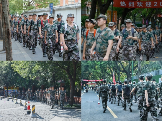 晨光熹微,训练场上身姿挺拔;团结一心,上理学子砥砺前行。自9月1日起,上海理工大学2024级新生踏上了为期13天的军训征程。区别于以往的军训形式,1100号校区积极创新、勇于尝试,首次采用“走训”形式,为同学们带来了别样的军训体验,让同学们在挑战自我的同时,也感受到了军训的魅力所在。 路程虽远,意志弥坚 本次军训中,1100号校区共有1855名学生参与走训活动,队伍规模庞大。每天早晨,学生会准时在1100号校区的点位集合,等待教官点名。点名完毕,同学们将跟随教官徒步前往516号校区开展训练。 数据显示,走训单程长达1.5公里。同学们每天需两次往返于两个校区之间,每日的走训总路程可达6公里。待到军训结束时,每名学生的走训总路程将累计突破60公里。在这一过程中,同学们身负重物,奋勇前进,每日的微信运动步数更是突破3万步,充分展现出了上理学子坚韧不拔的毅力和顽强拼搏的精神。