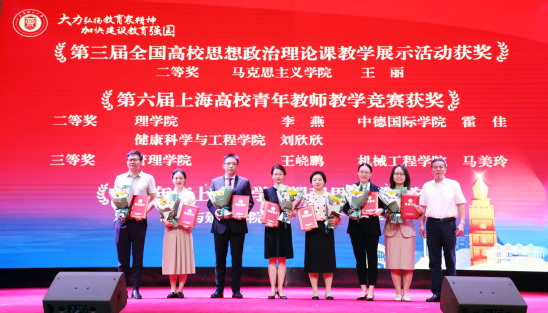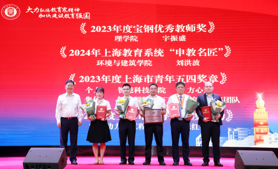 孙跃东为获“宝钢优秀教师”、上海教育系统“申教名匠”、“上海市青年五四奖章”、“上海市辅导员年度人物”等荣誉的教师颁奖