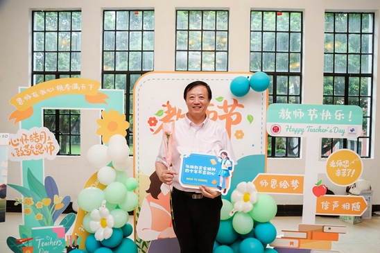 湛恩大道和勤勉大道两旁的道旗上展示着学校40位教师代表及从教感言,学校第40个教师节庆祝大会现场的拍照打卡区、互动体验区,该设计的视觉延展部分遍布在上理校园的各个角落,营造了尊师重教的浓厚氛围。