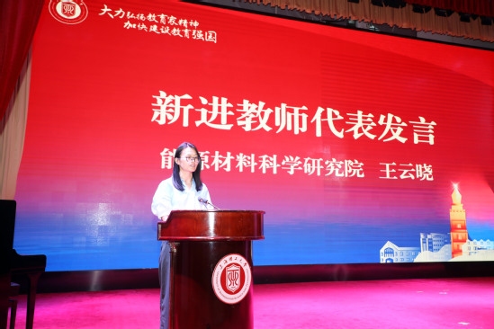 王云晓发言 王凌宇在讲话中代表学校向辛勤耕耘在教学、科研和管理一线的老师们致以崇高的敬意和诚挚的节日祝福,向获奖教师团队和个人致以热烈祝贺,向新进教师们表示热烈欢迎和美好祝愿。他对全体教师提出三点希望:一是弘扬践行教育家精神,筑牢思想根基、涵养高尚师德,做立德树人的大先生;二是甘为人梯、敬业奉献,练就扎实学识、精进育人本领,做时代新人的筑梦人;三是挺膺担当、奋楫笃行,敢于攻坚克难,勇攀学术高峰,做时代奋进的排头兵。