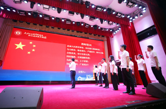 王神龙、李文翔、王丽分享育人故事 活动第三篇章,名为《初心》的40名教师从教感言视频展现了上理教师从事教育事业的热忱和决心。朱新远宣读从事教育工作30年教师名单并颁发荣誉证书,教龄32年的外语学院高文成老师分享了他的育人感悟。随后,新进教师宣誓仪式举行,2023年宝钢优秀教师奖获得者宇振盛上台领誓。能源与材料科学研究院王云晓作为新进教师代表发言。