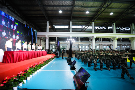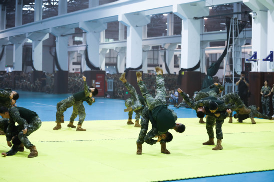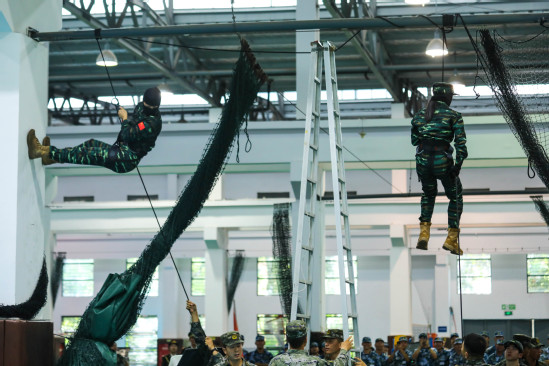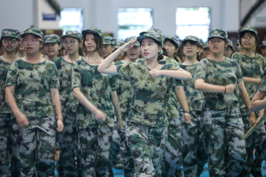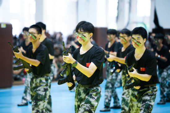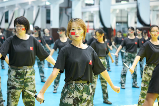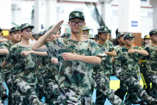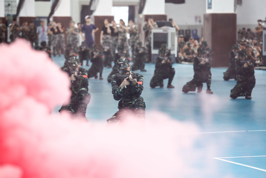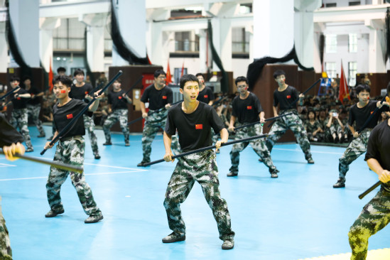 朱新远讲话 在汇报表演环节,新生和教官携手为大家呈现了一场视觉与力量的盛宴。军乐队演奏、警棍盾牌操、擒敌拳、应急棍术、女子匕首操、刺杀操、特战突击、武警教官摔擒对抗等科目轮流展示,生动体现了他们不畏艰难、勇往直前的坚定信念和卓越的军事素质,赢得了在场所有师生的热烈掌声。