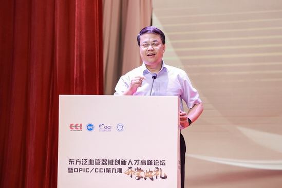 赵丹丹书记强调了泛血管器械创新人才高峰论坛及东方泛血管器械创新学院(OPIC)/CCI新学期开启的重要性,表示这是医工交叉创新成果的展示与未来科技创新的展望。赵书记特别指出,当前医疗领域面临诸多“卡脖子”工程,尤其是高端医疗器械依赖进口的问题,凸显了医工交叉创新的紧迫性和重要性。因此,泛血管器械创新学院作为人才培养的基地,通过教育培养大量后备干部和人才,对推动医学科技创新和泛血管领域的发展具有重要意义。同时表示,申康医院发展中心正通过设立临床创新成果奖和成立临床创新转化研究院有限公司等措施,促进临床成果的转化和应用,为医生提供更多经济支持和服务,以推动医院收入结构的优化和生物医学产业的发展。