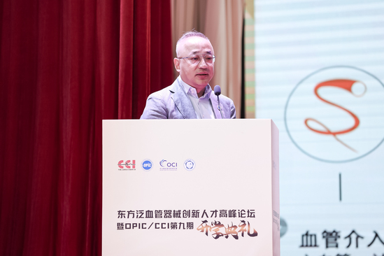 杜贤总编辑致辞强调了新时代下创新人才培养和科技创新的重要性,高度评价了葛均波院士及团队在医学领域,尤其是心血管医学方面的卓越成就和创新精神,新书《医学科技创新与成果转化》的出版进一步指导医疗器械创新科学发展。最后,杜总编辑预祝东方泛血管器械创新学院(OPIC)开学典礼圆满成功,鼓励同学们勇担使命,为创新贡献自己的力量。