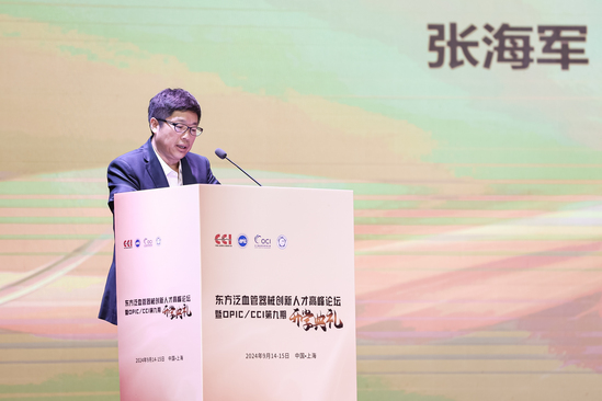 该环节由复旦大学附属中山医院心内科主任医师、CCI秘书长沈雳教授主持。 构建从器械创新到创新人才培养的完整闭环 东方泛血管器械创新学院(OPIC)将在医工融合研究领域开展创新性研究,培育泛血管器械的卓越人才。学院始终坚持需求导向、问题导向、效果导向,通过高质量医工交叉项目,形成研究生教育改革“特区”,构建“产学研用”的协同创新体系,加快泛血管领域的创新与转化,助力上海市乃至全国生物医药产业发展。 开学典礼现场,张海军教授和朱建兵教授分别作为新生代表发言。张海军教授表示,学院(OPIC)的成立是一次医学和工程领域重要的教育创新,他鼓励同学们保持对知识的渴望和追求,不断拓展知识面与视野,注重培养创新思维和实践能力,并强调了团队合作、学科交叉的重要性,最后表达了克服困难,取得成果的决心。朱建兵教授在发言中表达了对临床医疗创新的重视,他认为医疗创新是国家新质生产力的重要组成部分,并期待通过学习和实践找到有价值的创新方法。最后,他还提到了“九”在中国文化中的吉祥寓意,希望与同学们共同追求长久的学术和友谊。